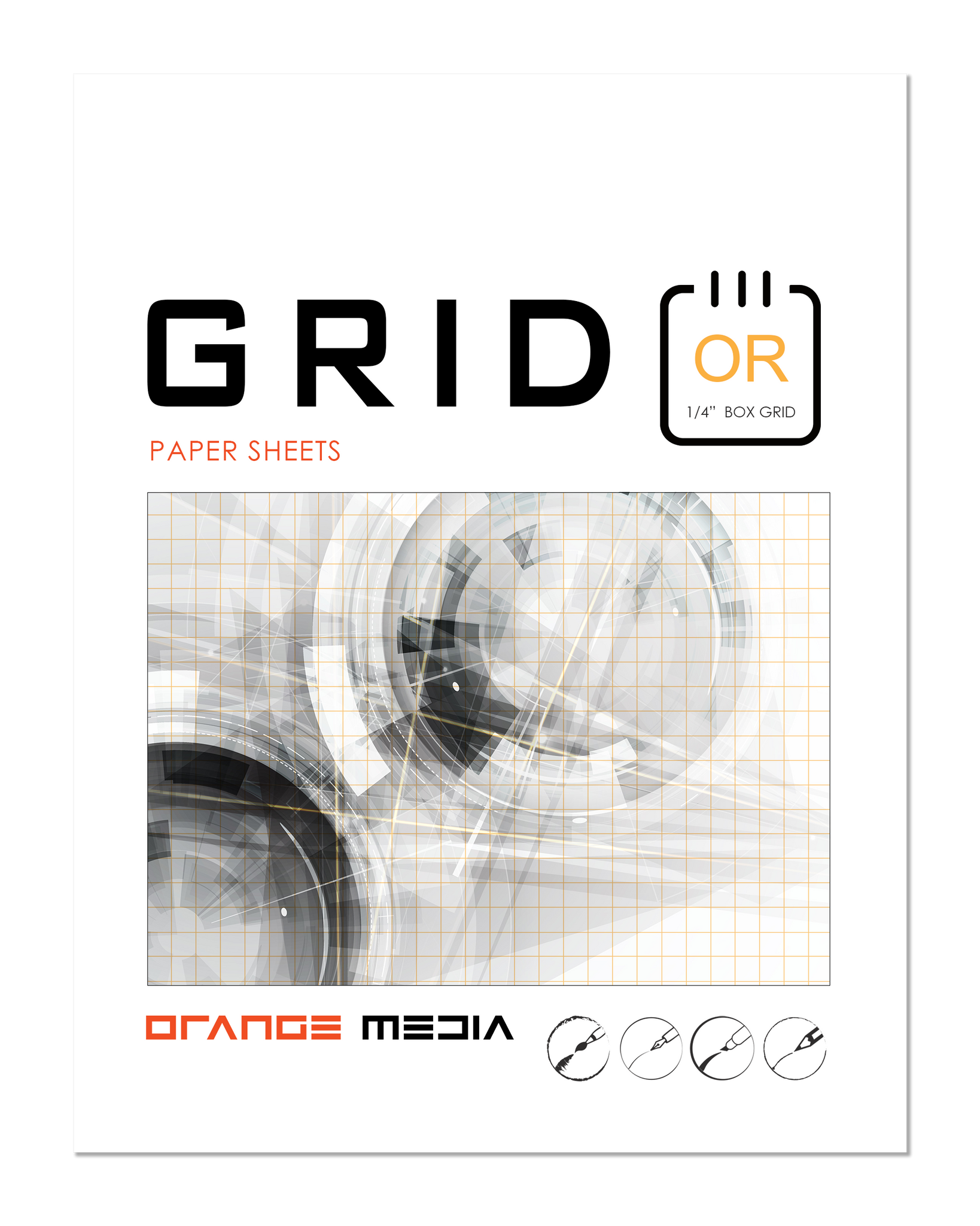 GRID PAPERS : Orange Media brand grid paper for pencil, ink, marker and watercolor painting. Great for art, design and education. Printed grid one side. Suitable for all ages.